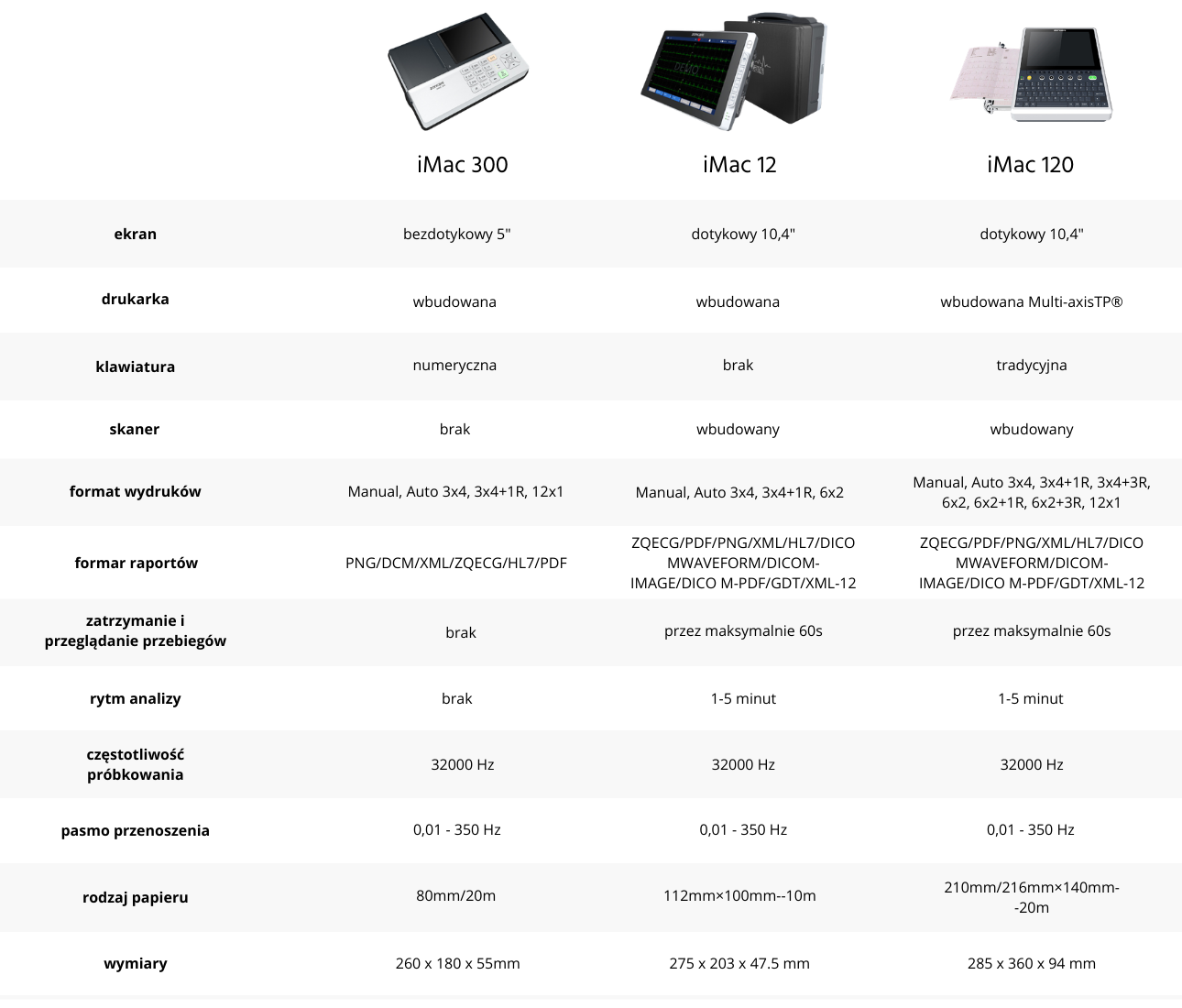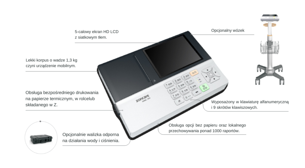 Cechy charakterystyczne elektrokardiografu Zoncare iMAC120: