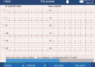 - Zaawansowane funkcje analizy: Aparat wyposażony jest w zaawansowane narzędzia do analizy sygnału EKG, takie jak detekcja arytmii, pomiar czasu QTc, analiza ST-T oraz wiele innych. Dzięki temu lekarze mogą dokładnie ocenić ryzyko sercowe pacjentów i podejmować odpowiednie działania.